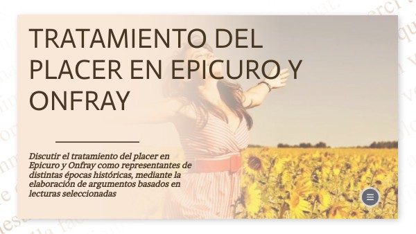 Discutir el tratamiento del placer en Epicuro y Onfray como representantes de distintas épocas históricas, mediante la elaboración de argumentos basados en lecturas seleccionadas