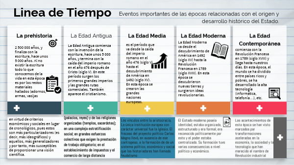 Eventos importantes de las épocas relacionadas con el origen y desarrollo histórico del Estado.