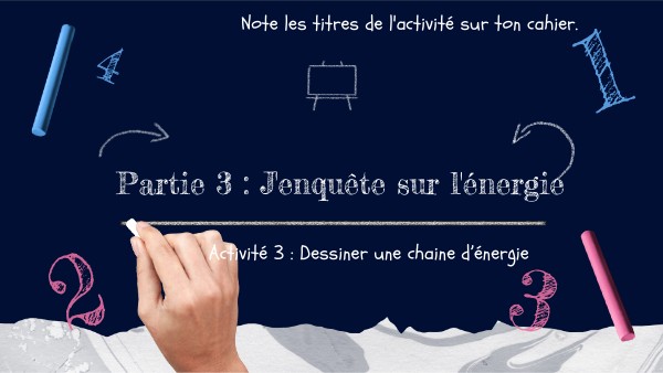 Grâce au document et aux exercices d'entrainement, complète la chaine d’énergie décrite dans l’animation.