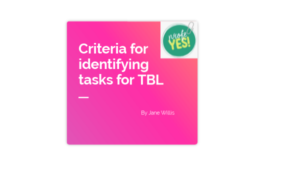 " ...Tasks are always activities where the target language is used by the learner for a communicative purpose (goal) in order to achieve an outcome..."
