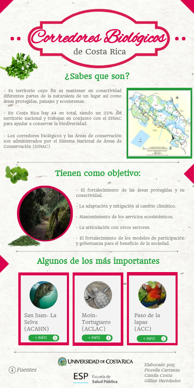 - Los corredores biológicos y las Áreas de conservación son administrados por el Sistema Nacional de Áreas de Conservación (SINAC)
