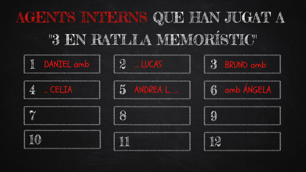 AGENTS INTERNS QUE HAN JUGAT A "3 EN RATLLA MEMORÍSTIC"