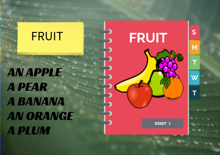 AN APPLEA PEAR A BANANA AN ORANGE A PLUM