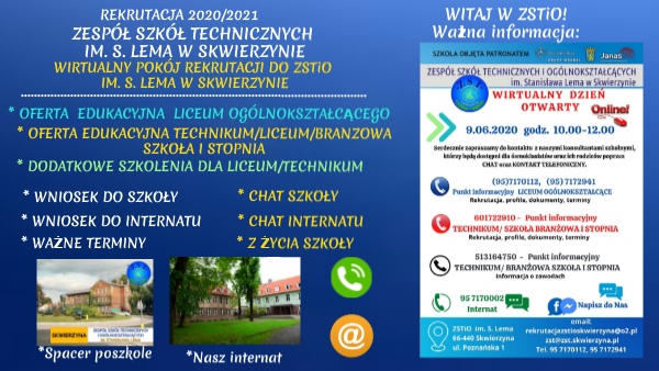 WIRTUALNY POKÓJ REKRUTACJI DO ZSTiO IM. S. LEMA W SKWIERZYNIE