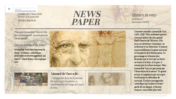 On peut dire que Léonard de Vinci est un humaniste car celui-ci est un esprit curieux. C'est un artiste, un savant, un scientifique, un architecte et un ingénieur. On peut voir qu'il situe l'homme au centre de sa réflexion et qu'il étudie aussi les