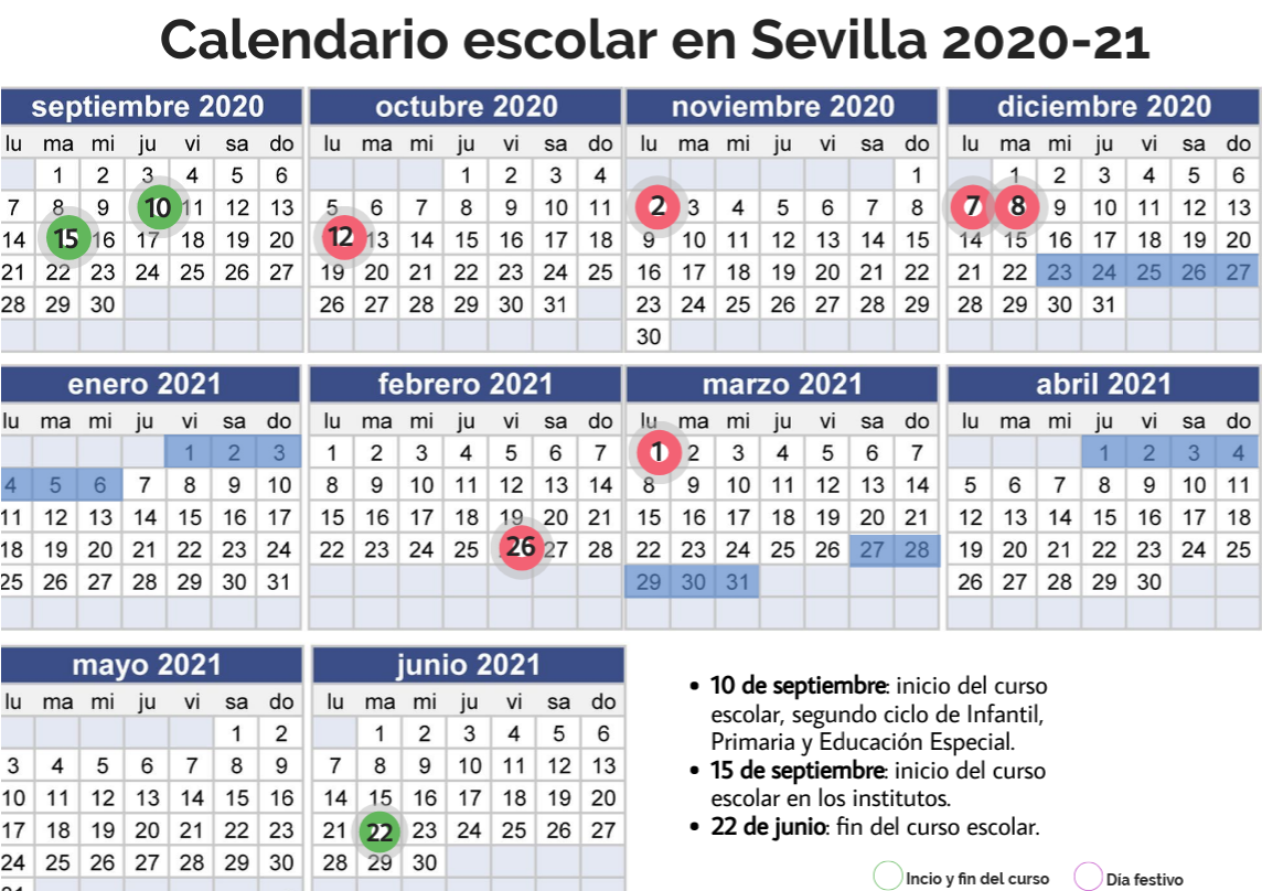 - 15 de septiembre: inicio del curso escolar en los institutos.