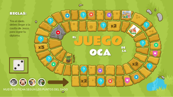 Tira el dado, debes llegar a la casilla de Jesús para lograr tu diploma.
