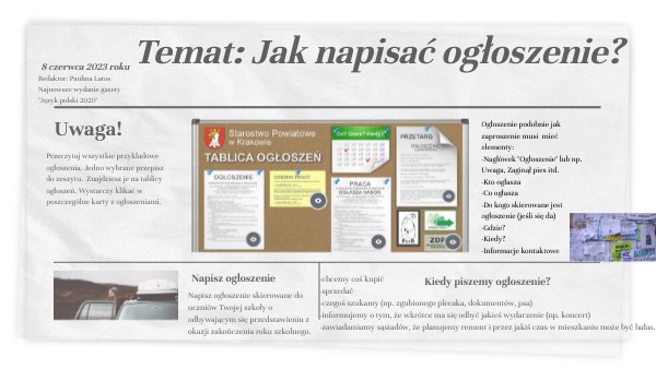 Temat: Jak napisać ogłoszenie?