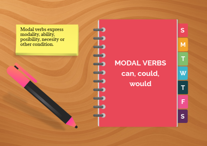 Modal verbs express modality, ability, posibility, necesity or other condition.