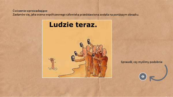 Ćwiczenie wprowadzające: Zastanów się, jaka ocena współczesnego człowieka przedstawiona została na poniższym obrazku.