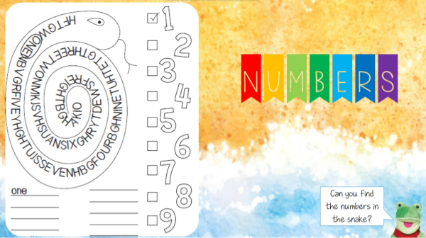 Can you fin the numbers in the snake? Circle and write