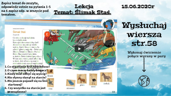 Lekcja 15.06.2020r Temat: Ślimak Staś.