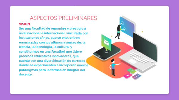 VISIONSer una Facultad de renombre y prestigio a nivel nacional e internacional, vinculada con instituciones afines, que se encuentren enmarcadas con los últimos avances de: la ciencia, la tecnología, la cultura; y constituirnos en una Facultad que lidere procesos educativos innovadores, que cuente con una diversificación de carreras donde se experimenten e incorporen nuevos paradigmas para la formación integral del docente.