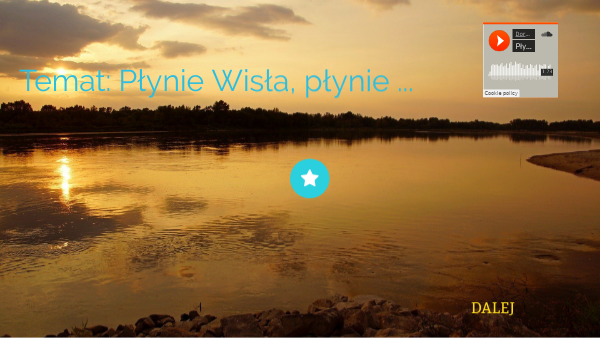 Czarna Wisełka z Białą się spotyka, na stoku Baraniej Góry w postaci strumyka. Szybko, wartko naprzód płynie, Po naszej pięknej, polskiej krainie. Mija miasta, wsie, doliny, Ma kształt długiej niebieskiej liny. Cieszy oko, dech zapiera, Najpiękniejsza rzeka w dziejach. Bywa groźna, niebezpieczna, Pomoc może być konieczna. Dopływa do morza i kończy swój bieg I odtąd wraz z falą uderza o brzeg.
