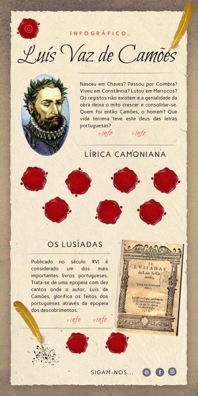 Publicado no século XVI é considerado um dos mais importantes livros portugueses. Trata-se de uma epopeia com dez cantos onde o autor, Luís de Camões, glorifica os feitos dos portugueses através da epopeia dos descobrimentos.