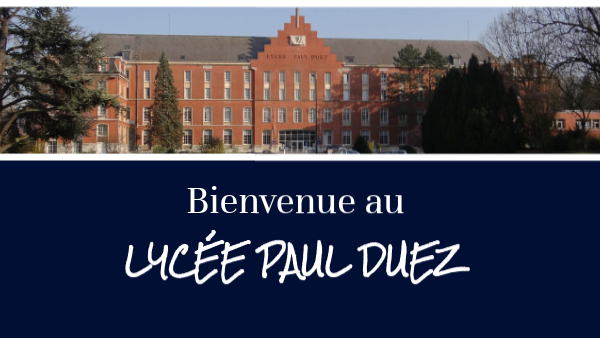 Chers futurs élèves, Afin d'appréhender la rentrée de septembre 2020, nous vous proposons une présentation du lycée Paul Duez. Nous espérons que cela vous permettra de mieux comprendre le fonctionnement de l'établissement mais aussi de connaitre les lieux et les différents personnels. e