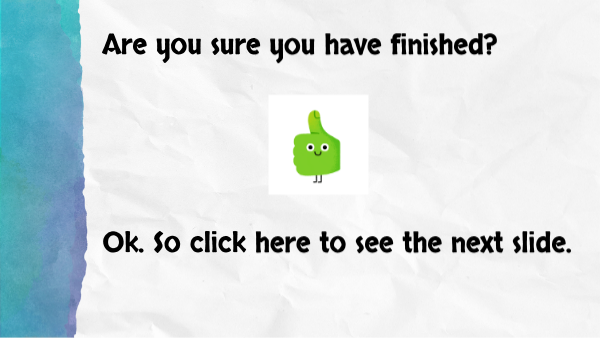 Are you sure you have finished? Ok. So click here to see the next slide.