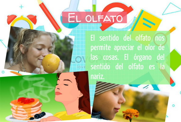 El sentido del olfato nos permite apreciar el olor de las cosas. El órgano del sentido del olfato es la nariz.