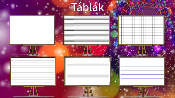 Többféle írható tábla egy helyen: vonalas, négyzetrácsos, kotta, stb.