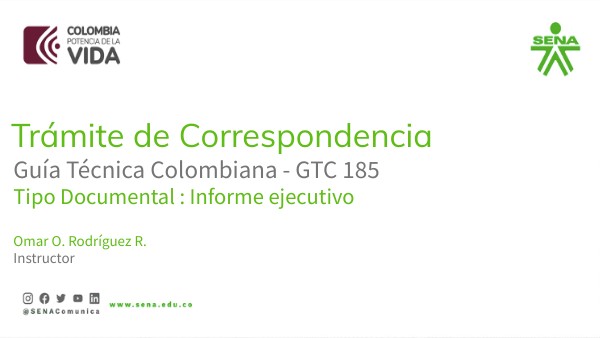 Puede tener o no portada. En caso de no tenerla se remplaza por un encabezamiento. Se recomienda que el resumen incluya: - encabezamiento, conformado por razón social, dependencia, número o código, título, lugar de origen y fecha de elaboración; - autoría del resumen ejecutivo; - objetivos; - numerales o temas; - conclusiones y recomendaciones, y - firma.