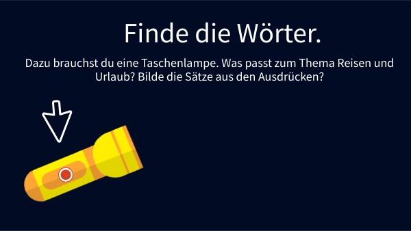 Dazu brauchst du eine Taschenlampe. Was passt zum Thema Reisen und Urlaub? Bilde die Sätze aus den Ausdrücken?