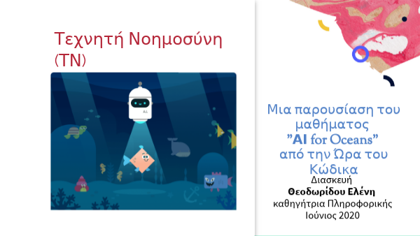 Μια παρουσίαση του μαθήματος ΑΙ for Oceans, Hour of Code, Eleni Theodoridou 2020