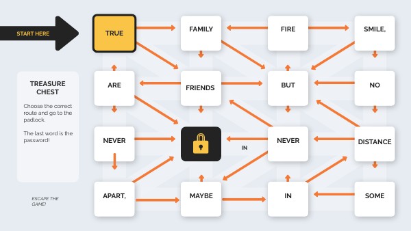 Solve this puzzle and discover a wonderful saying about friendship TRUE FRIENDS ARE NEVER APART, MAYBE IN DISTANCE BUT NEVER IN HEART!