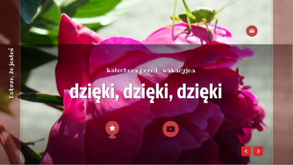 Wakacje to ważny czas, jest to czas odpoczynku, w którym trzeba zregenerować ciało, oczy, umysł i serce. Niech te wakacje będą rekreujące i regenerujące. Cieszcie się pięknem, spotykajcie ze sobą i innymi. Poznajcie wiele ciekawych miejsc... Zaowoujcie... zainwestujcie nie zapomnijcie, by te wakacje przeżyć z Bogiem Posłuchajcie rad pewnego królika...
