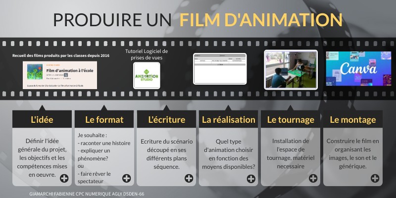 Définir l'idée générale du projet, les objectifs et les compétences mises en œuvre.Mettre en œuvre un projet film d'animation dans sa classe c'est adopter les grands principes de la pédagogie de projet, appelée aussi, pédagogie active.Ci-dessous une synthèse proposée par le site : https://www.bienenseigner.com/la-pedagogie-de-projet/, pour y voir plus clair."Le concept de pédagogie de projets ne date pas d’hier. En effet, de nombreux pédagogues se sont penchés sur ce concept dès la fin du 19e siècle. La pédagogie de projet a été inspirée des travaux de John Dewey (1859-1952), philosophe et pédagogue américain, qui est basée sur une action organisée vers un but précis ; appelée aussi « Learning by doing ». C’est-à-dire apprendre en faisant (1929). Par ailleurs, Dewey a remarqué que l’enseignement théorique donne peu de résultats par rapport à l’enseignement pratique. Pour lui, le penser et le faire sont inséparable.