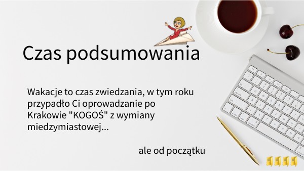 Wakacje to czas zwiedzania, w tym roku przypadło Ci oprowadzanie po Krakowie "KOGOŚ" z wymiany miedzymiastowej...