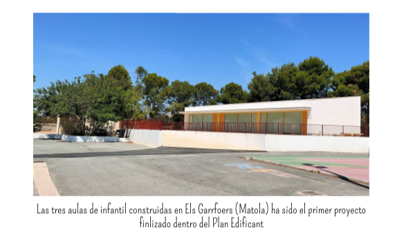 Las tres aulas de infantil construidas en Els Garrfoers (Matola) ha sido el primer proyecto finlizado dentro del Plan Edificant