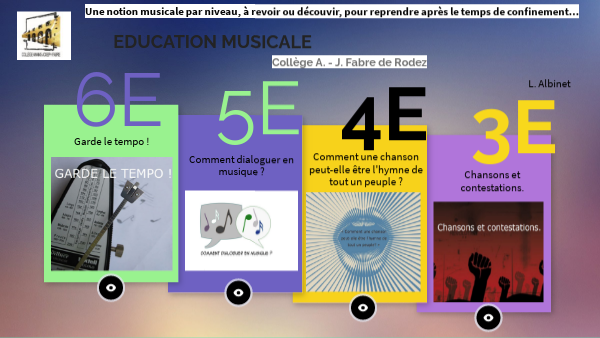 Une notion musicale par niveau, à revoir ou découvir, pour reprendre après le temps de confinement...