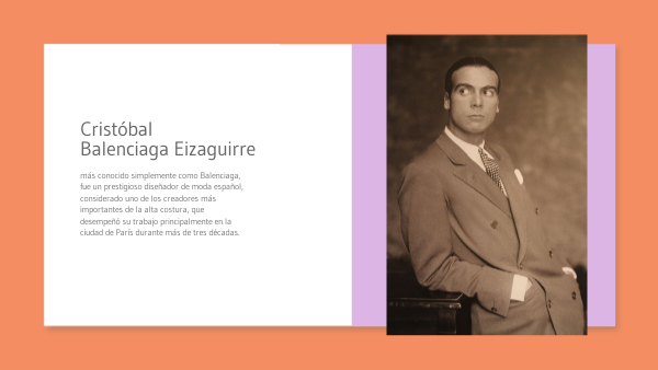 más conocido simplemente como Balenciaga, fue un prestigioso diseñador de moda español, considerado uno de los creadores más importantes de la alta costura, que desempeñó su trabajo principalmente en la ciudad de París durante más de tres décadas.