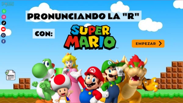 Plantilla de Genially adaptada para el aprendizaje lúdico de la letra "R" y fonema /r/. Gamificada con la temática de Super Mario de Nintendo.