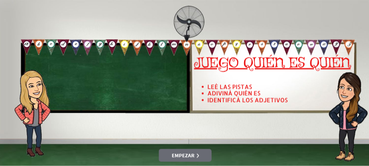 Volvé a leer las pistas de Felicitas y apretá sobre un adjetivo para pasar a la siguiente.