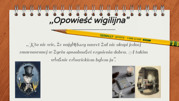 NA ZAKOŃCZENIE SPOTKANIA Z UTWOREM CH. DICKENSA PRZEPROWADŹ WYWIAD ZE SCROOGEM. ZAPYTAJ GO JEGO DOŚWIADCZENIA ŻYCIOWE, A ZWŁASZCZA O JEGO DUCHOWĄ PRZEMIANĘ. WYWIAD POWINIEN BYĆ ZAPISANY W ZESZYCIE I ZAWIERAĆ PRZYNAJMNIEJ 7 PYTAŃ.