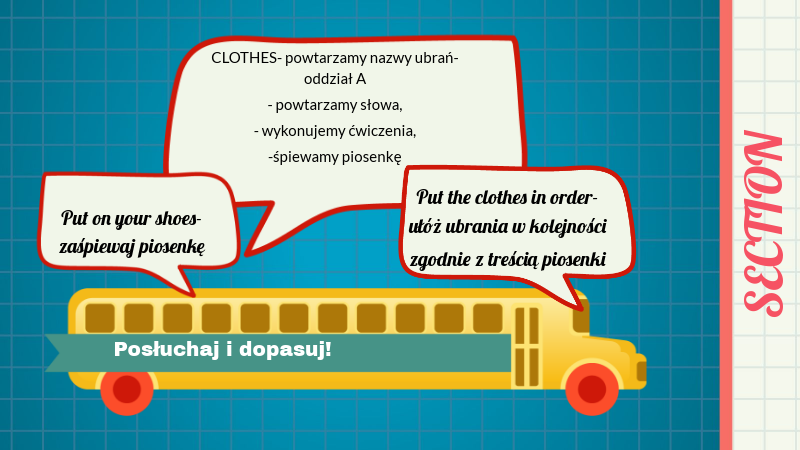 CLOTHES- powtarzamy nazwy ubrań- oddział A - powtarzamy słowa, - wykonujemy ćwiczenia, -śpiewamy piosenkę