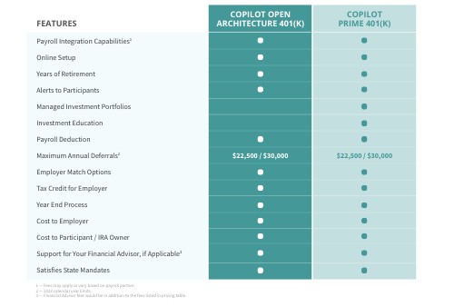 CoPilot OA 401k vs CoPilot Prime 401k