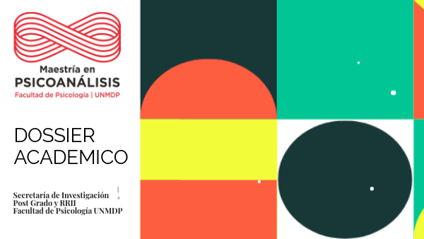 EL DOSSIER ACADÉMICO on line tiene el propósito de divulgar breves participaciones destinadas a la comunidad educativa, sobre temas de interés en lo que concierne a la práctica y teoría del psicoanálisis. EL objetivo es dar a conocer las producciones de los maestrandos, docentes y ex alumnos de nuestra comunidad referidos a temas de actualidad, discusiones temáticas o desarrollos de avances de tesis, etc. La convocatoria sobre estos temas pretende ser amplia dentro de los contenidos relativos al área de conocimiento, ajustada al formato académico APA, de una entrega bimestral.