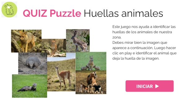 Este juego nos ayuda a identificar las huellas de los animales de nuestra zona. Debes mirar bien la imagen que aparece a continuación, Luego hacer clic en play e identificar el animal que deja la huella de la imagen.