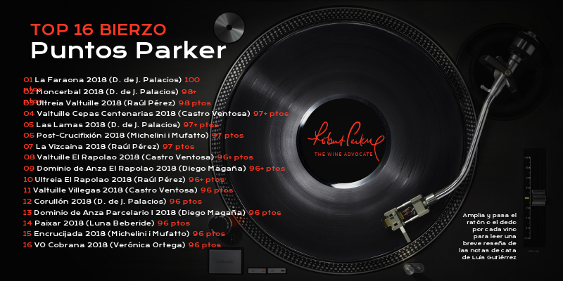 Los 16 vinos del Bierzo que obtienen la calificación de excelentes/extraordinarios por The Wine Advocate con puntuaciones entre los 96 y 100 puntos de Robert Parker