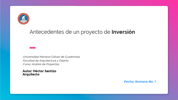 Universidad Mariano Gálvez de GuatemalaFacultad de Arquitectura y DiseñoCurso: Análsis de Proyectos