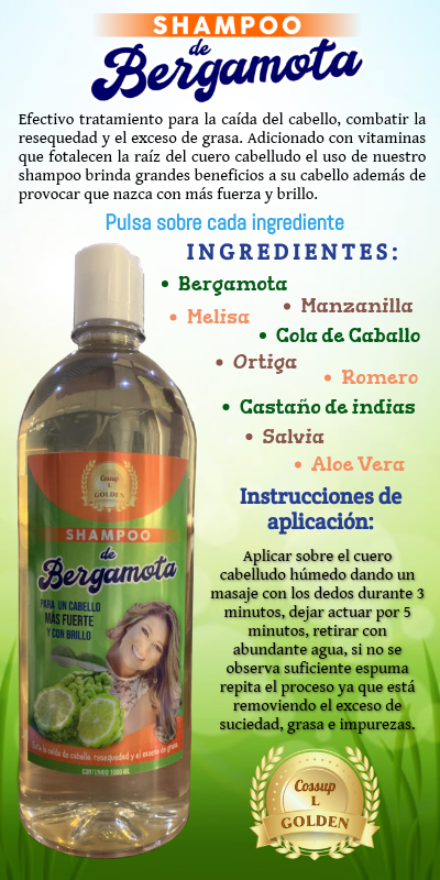 Descripción de ingredientes y beneficios del Shampoo de Bergamota.