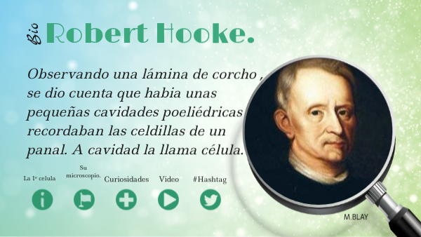 Observando una lámina de corcho , se dio cuenta que habia unas pequeñas cavidades poeliédricas le recordaban las celdillas de un panal. A cavidad la llama célula.