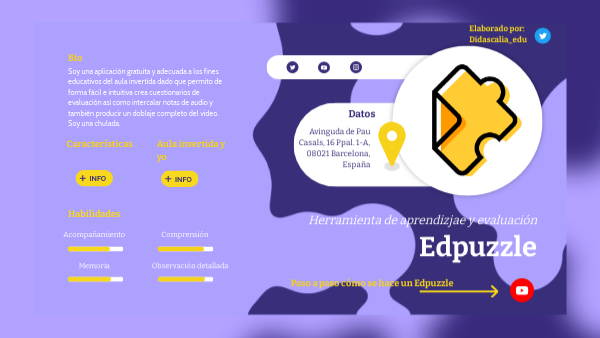 Soy una aplicación gratuita y adecuada a los fines educativos del aula invertida dado que permito de forma fácil e intuitiva crea cuestionarios de evaluación así como intercalar notas de audio y también producir un doblaje completo del video. Soy una chulada.