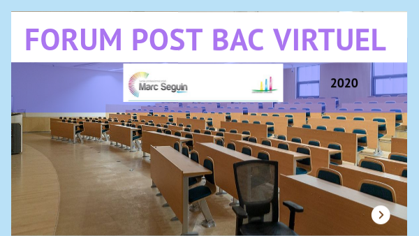 Depuis 5 ans, le lycée professionnel Marc Seguin organise au sein de ses murs un forum post bac pour permettre aux élèves de faire des choix éclairés avant l'ouverture de la plateforme PARCOURSUP. Cette année en raison de la crise sanitaire, son organisation n'est pas possible. Aussi nous vous proposons de retrouver toutes les informations nécessaires sur les écoles qui sont présentes chaque année pour cette occasion. Ainsi, vous retrouverez par filière, les BTS possibles après le bac, mais aussi des liens directs sur les sites des écoles, pour avoir les informations concrètes sur les formations, les conditions d'inscriptions, les journées portes ouvertes... Bonne visite