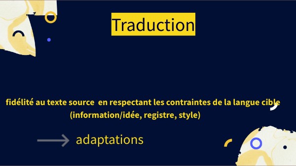 fidélité au texte source en respectant les contraintes de la langue cible (information/idée, registre, style)