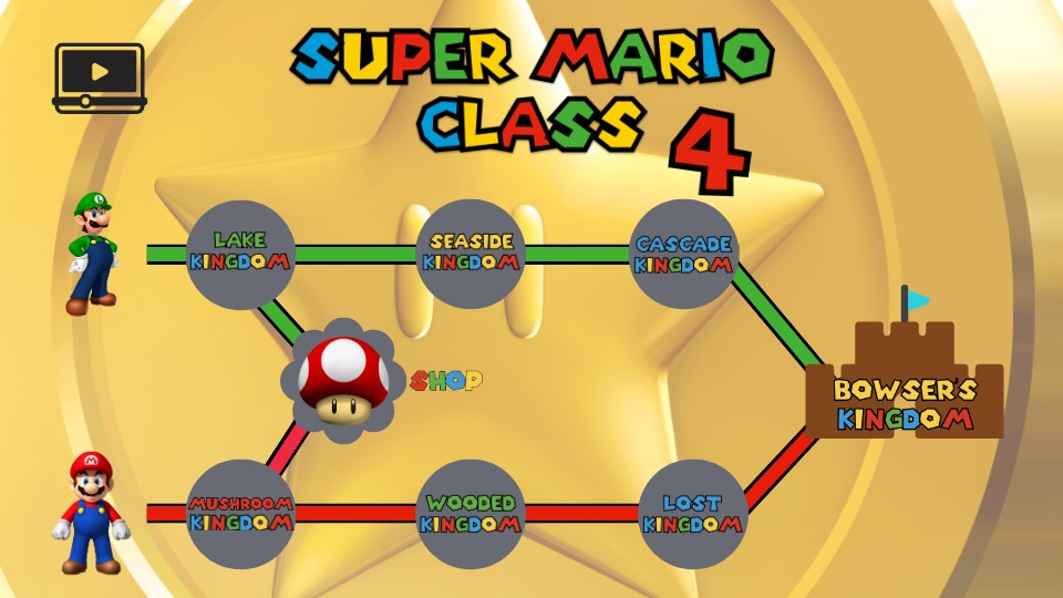 Mapa y contenidos de la gamificación de Super Mario Class 4