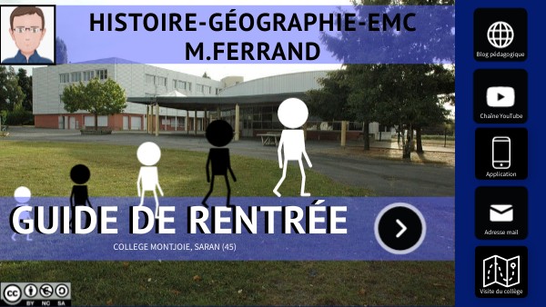 Bonjour à toutes et à tous. Afin de passer une agréable année scolaire, je mets à disposition des élèves mais également de leurs parents de nombreux outils. Le but est de permettre à l'élève de s'épanouir dans la discipline et surtout de prendre goût pour notre histoire, pour le monde qui nous entoure et pour les nombreux enjeux de citoyenneté qui animeront sa vie future. BELLE ANNEE SCOLAIRE