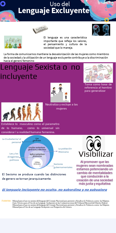 -Manual para el uso no sexista del lenguaje del Consejo Nacional para prevenir y Erradicar la Violencia contra las Mujeres. -Guía Técnica para el Uso de un Lenguaje Incluyente en las Comunicaciones del Tribunal Electoral del Distrito Federal. -Manual para el uso no sexista del lenguaje del Consejo Nacional para prevenir y Erradicar la Violencia contra las Mujeres. -Manual para el Uso de un Lenguaje Incluyente con Perspectiva de Genero.